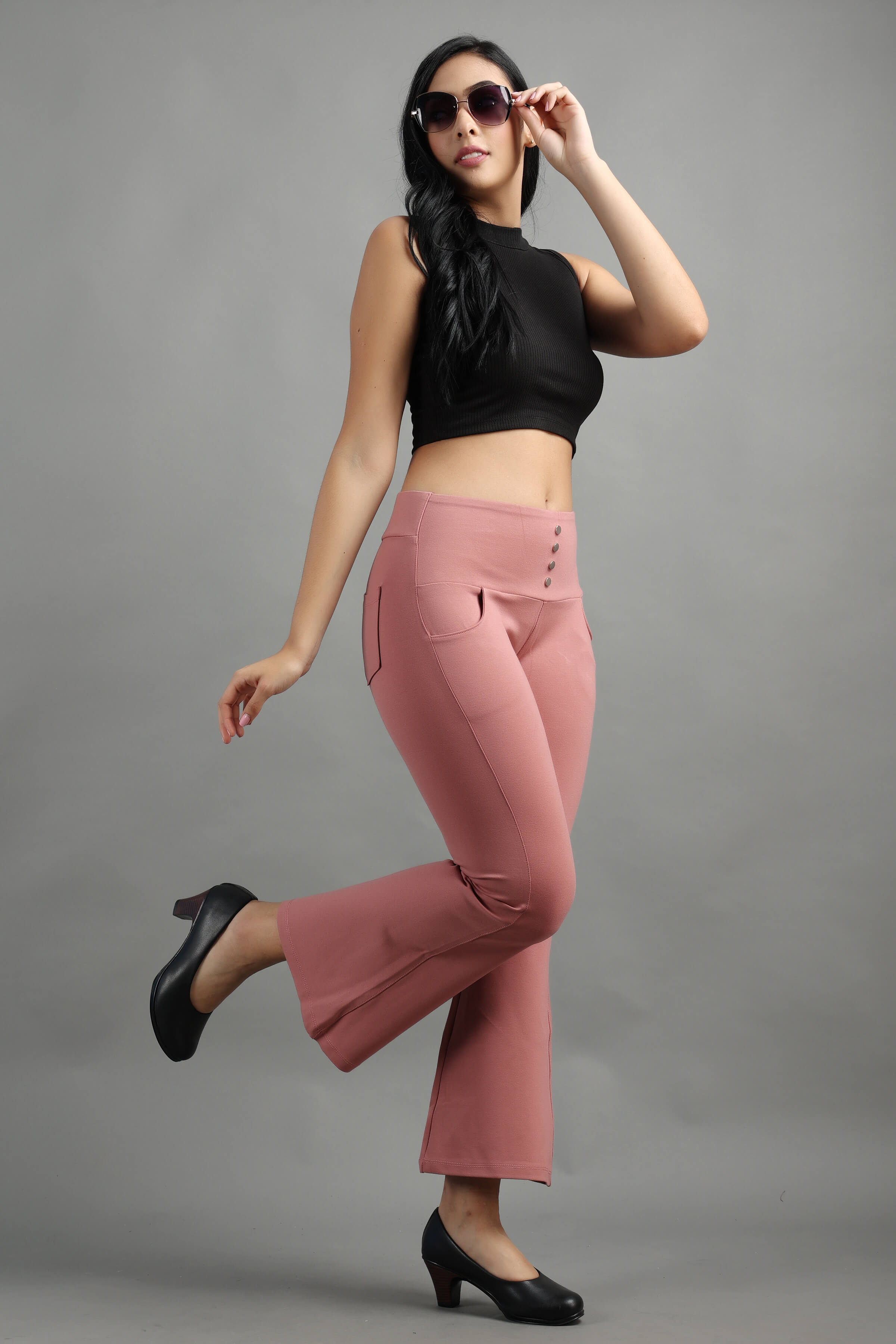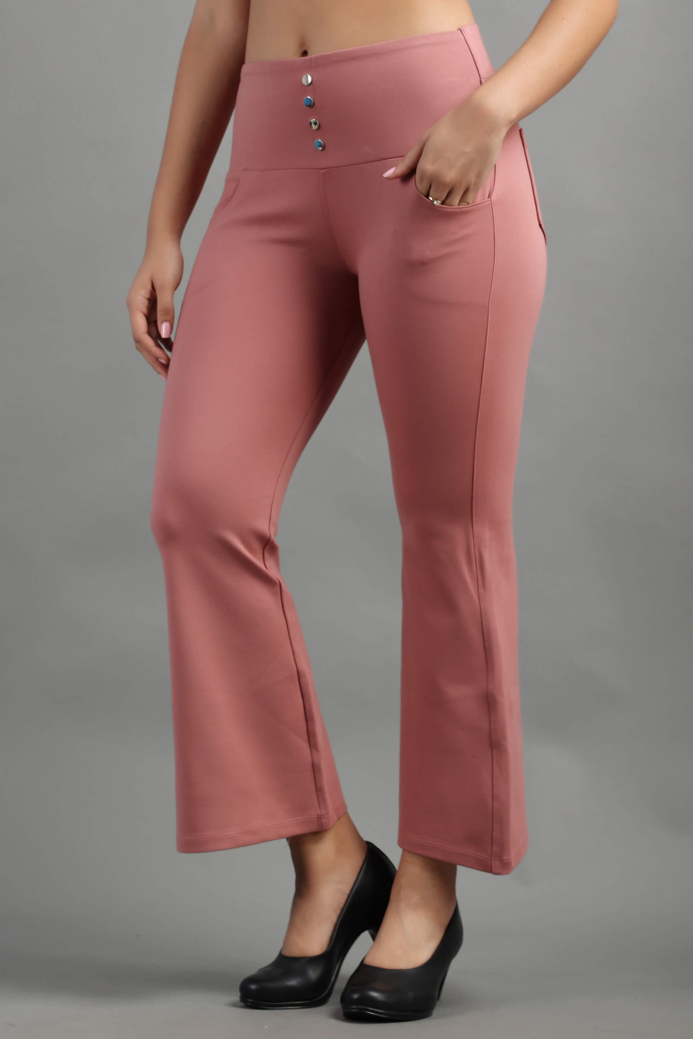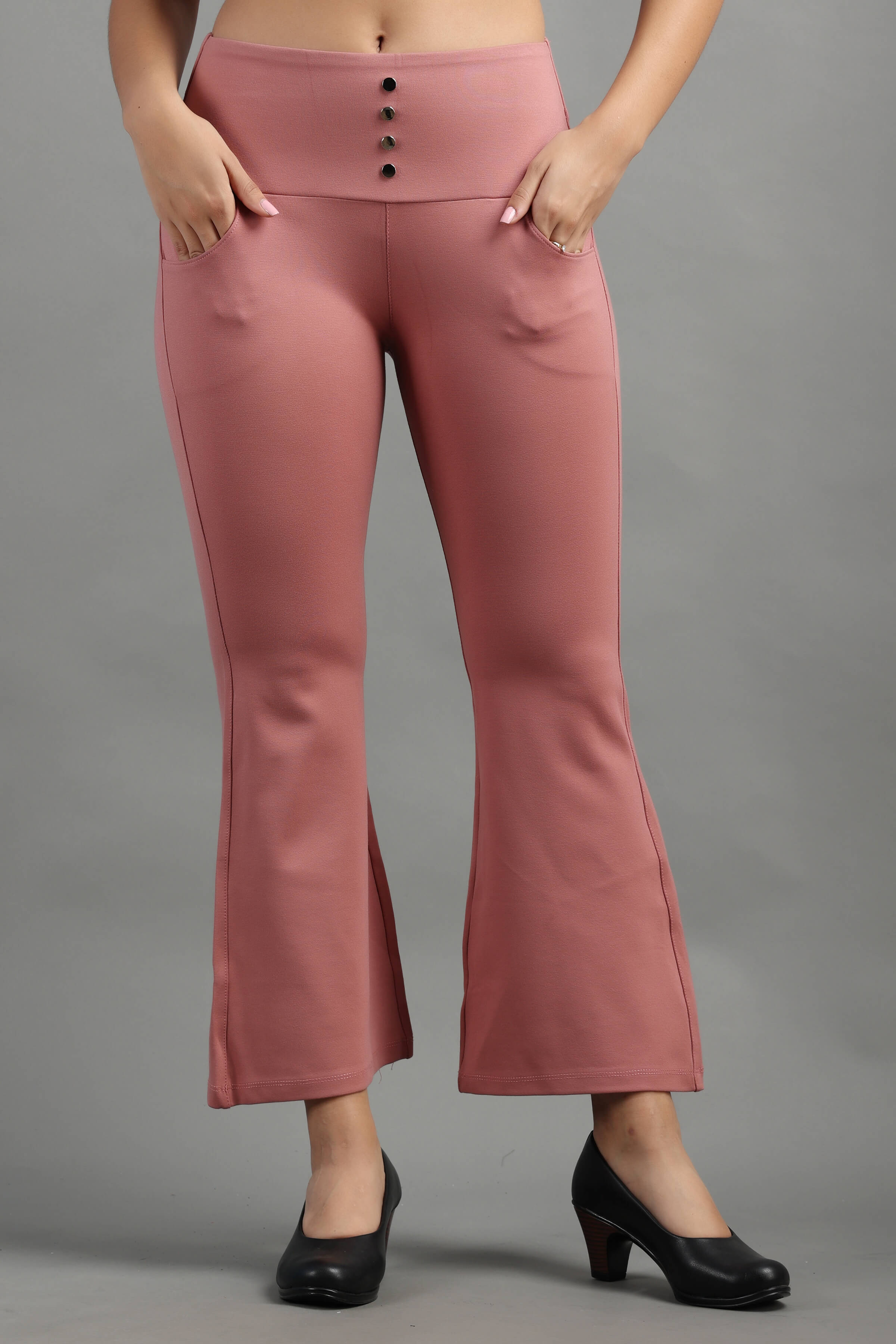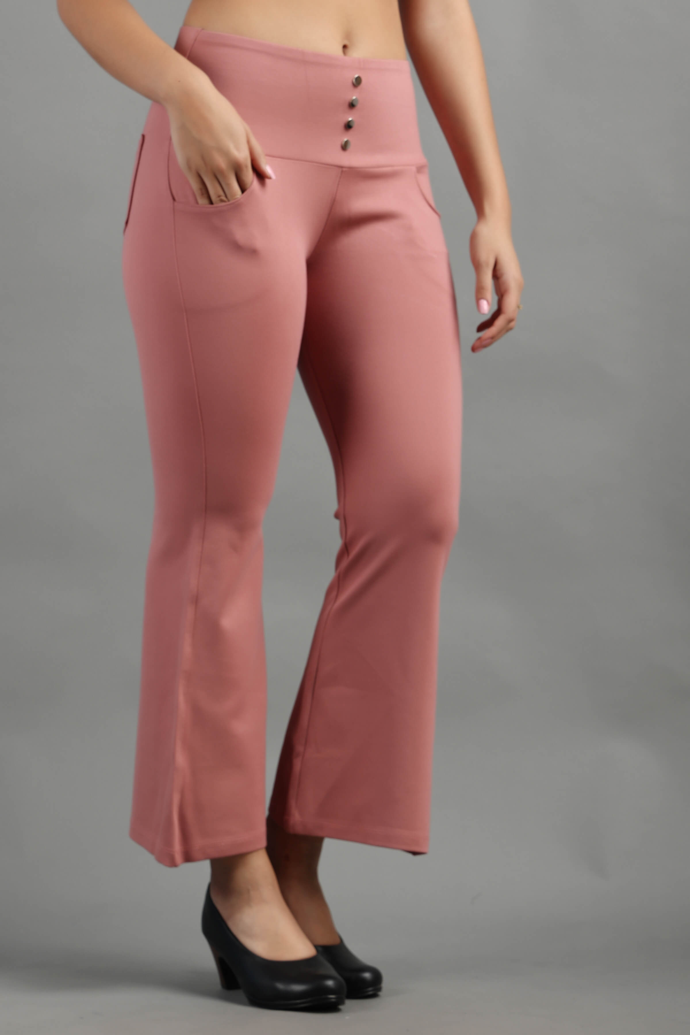 Pink Peach Stylish and well fitted bootcut Jegging, Breathable and Premium smooth fabric for all-day comfort, has a broad elasticated waistband for extra comfort and two front pockets, All styling accessories (elastic, zipper, and buttons) used on the garment are of the best quality.