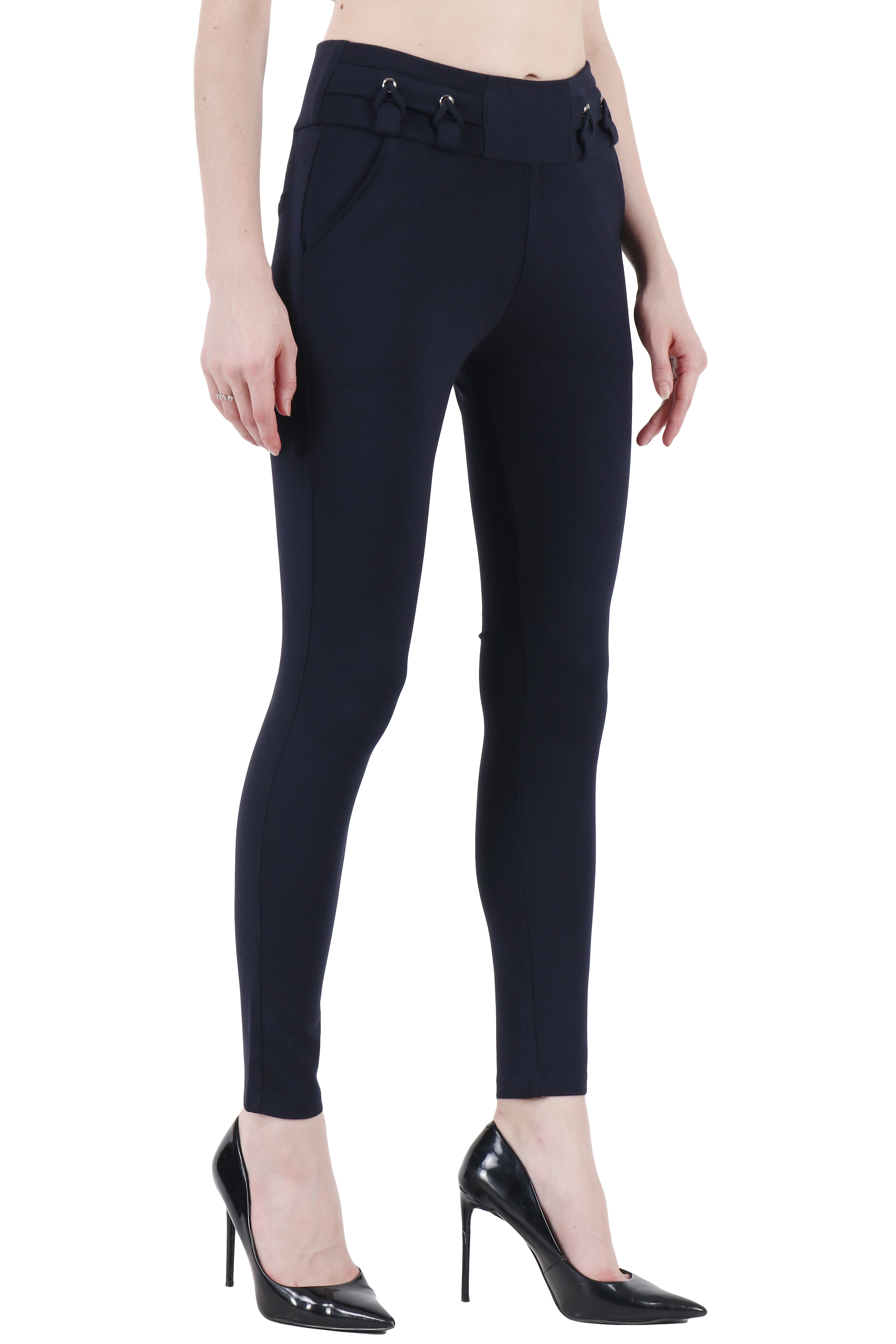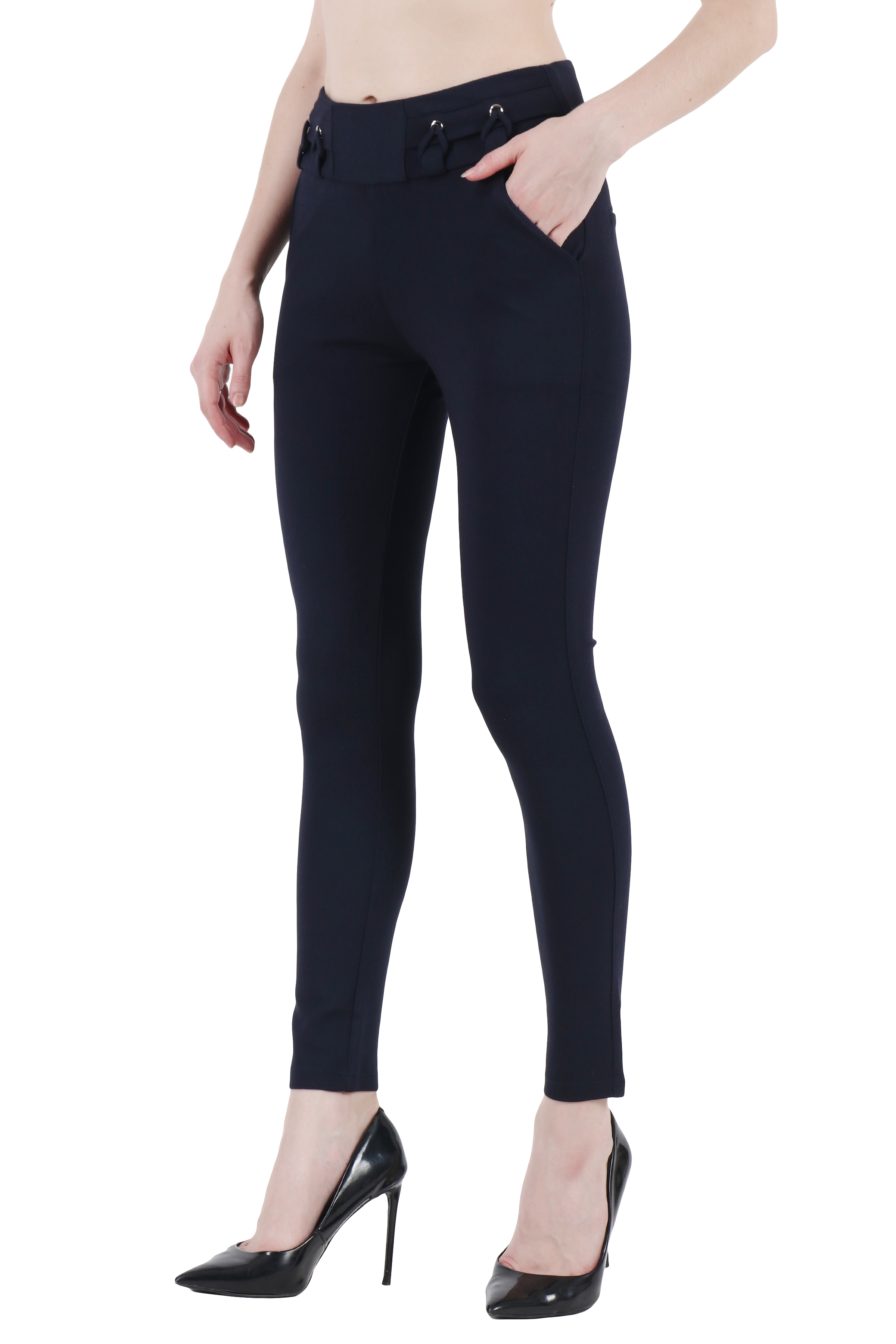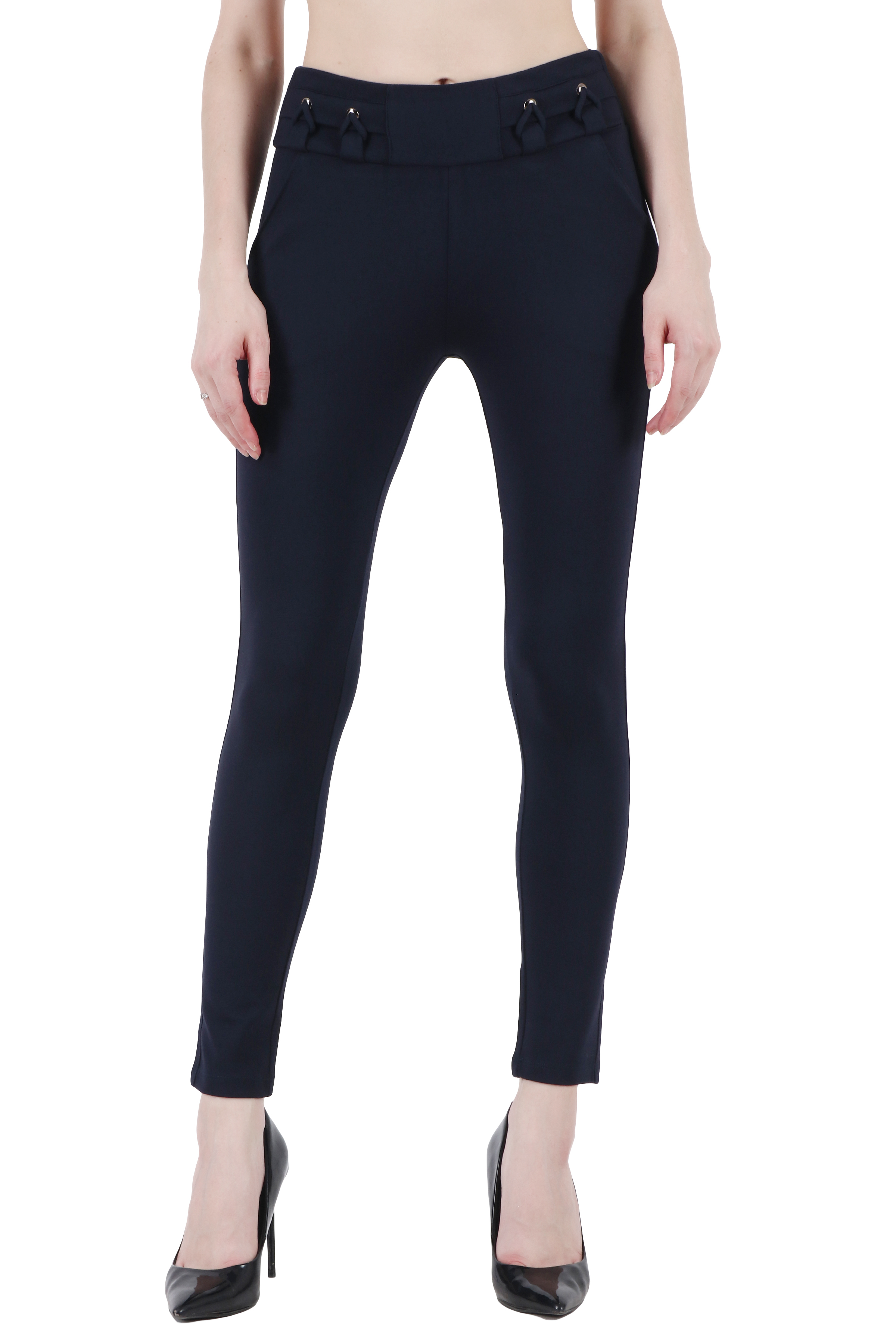Navy Blue Stylish and well-fitted Jegging with, Breathable and Premium smooth fabric for all-day comfort, has an elasticated waistband for extra comfort and two front pockets, All styling accessories ( elastic, zipper, and buttons) used on the garment are of the best quality.