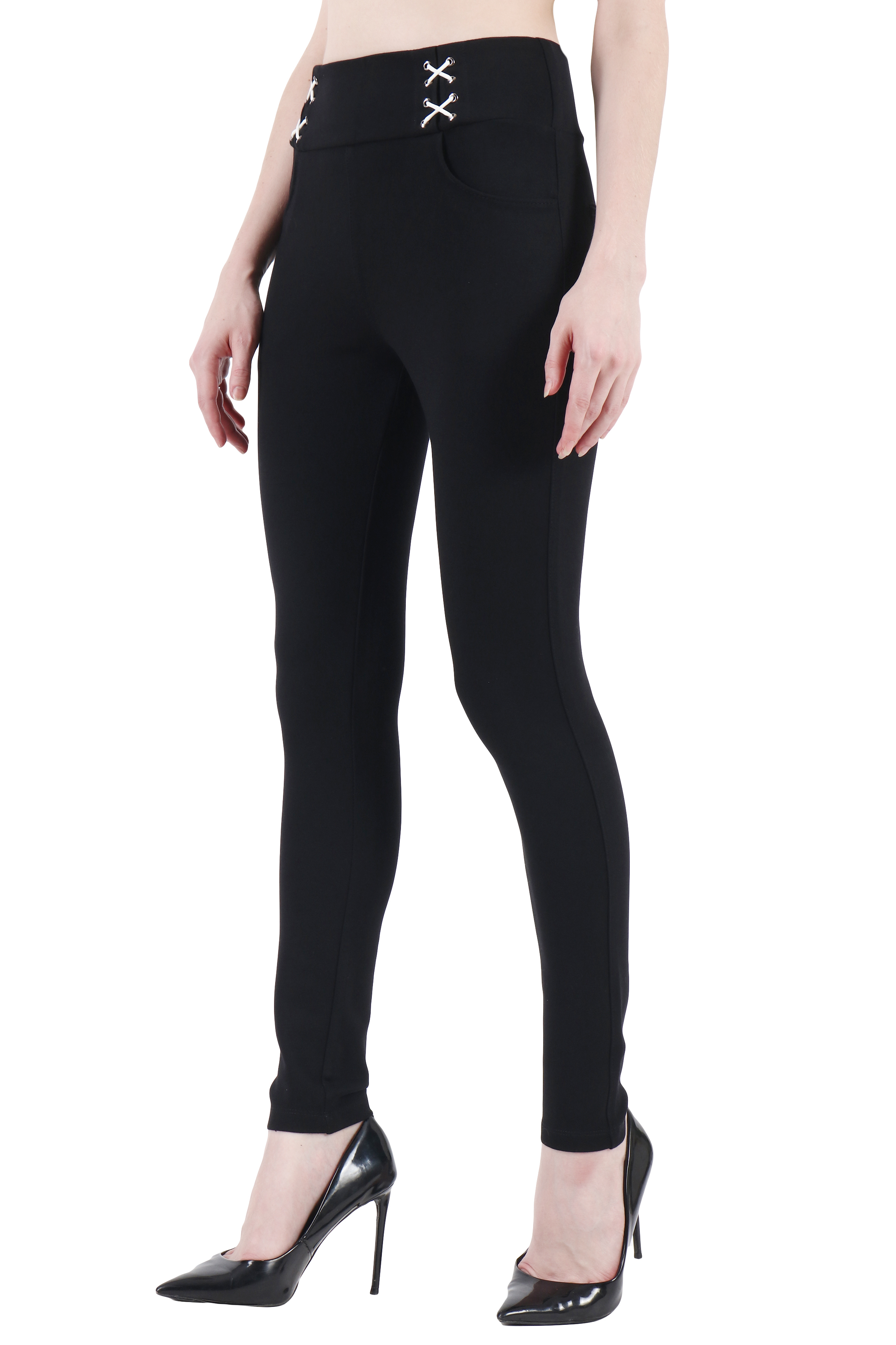 Black Stylish and well fitted Jegging, Breathable and Premium smooth fabric for all-day comfort, has a Broad elasticated waistband for extra comfort and two front pockets, All styling accessories ( elastic, zipper, and buttons) used on the garment are of the best quality.