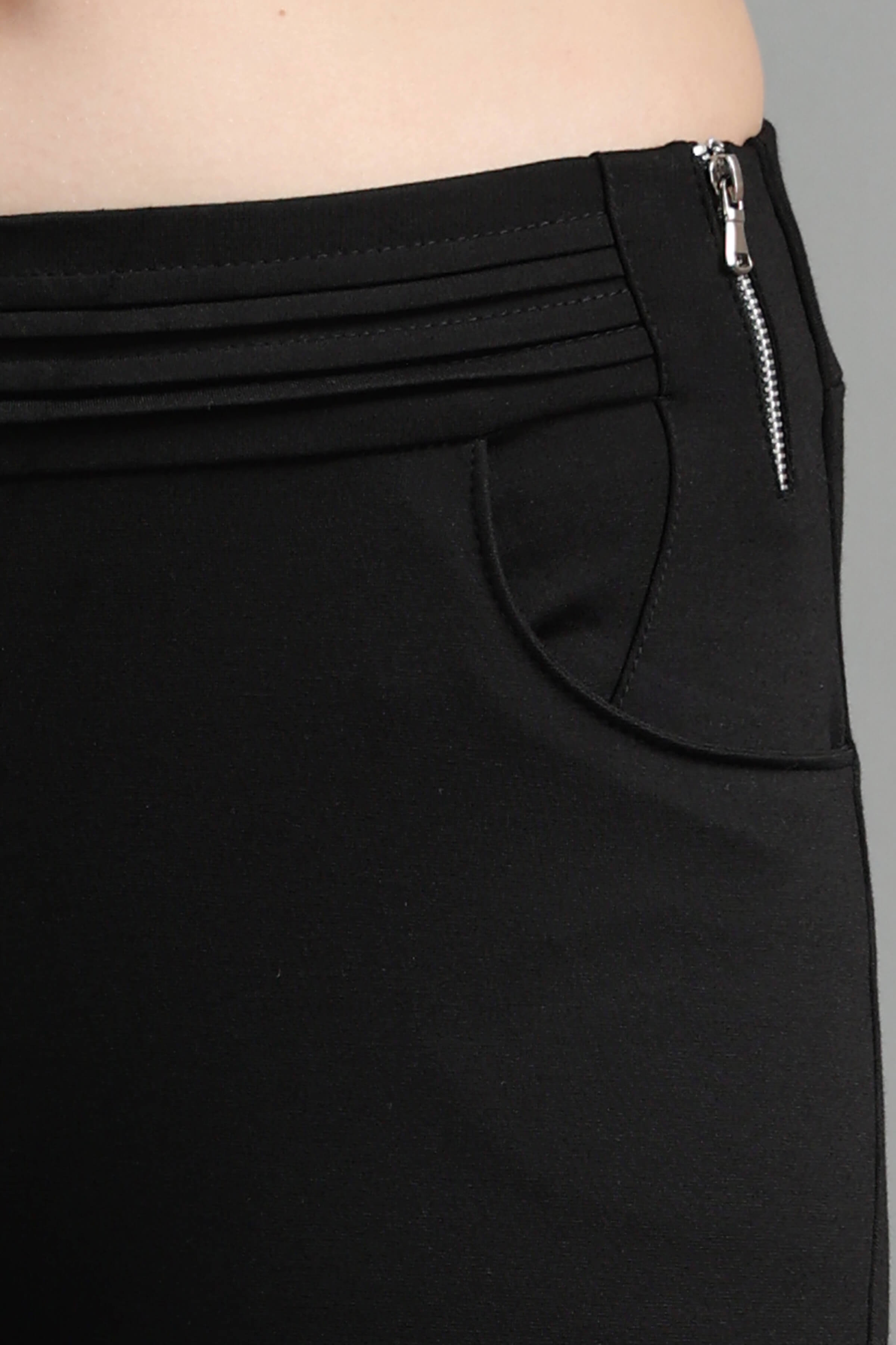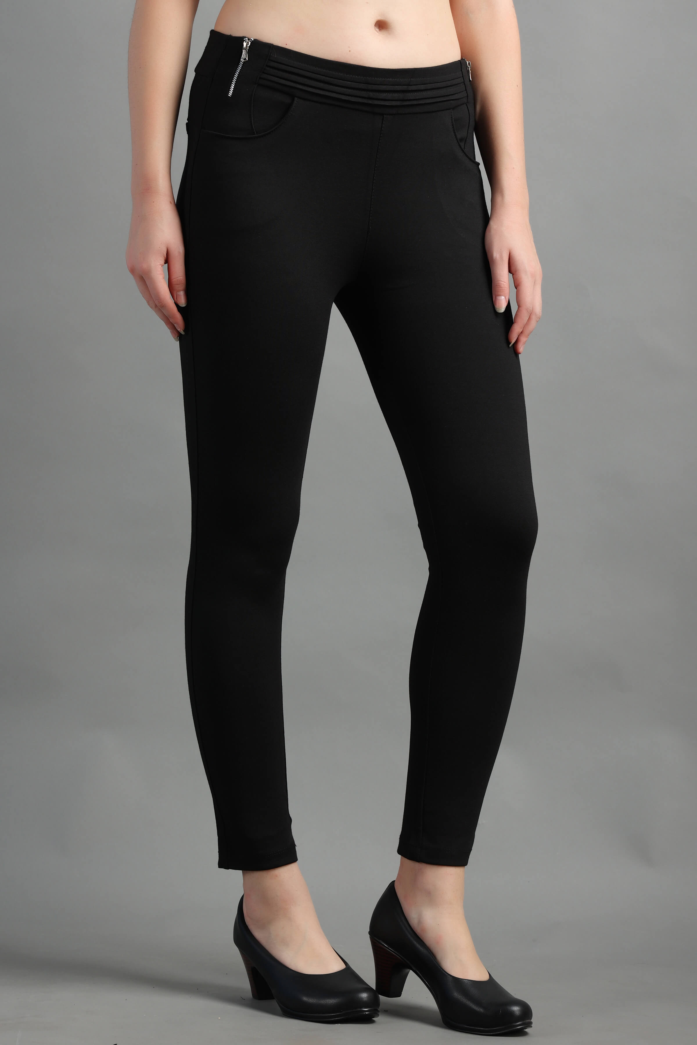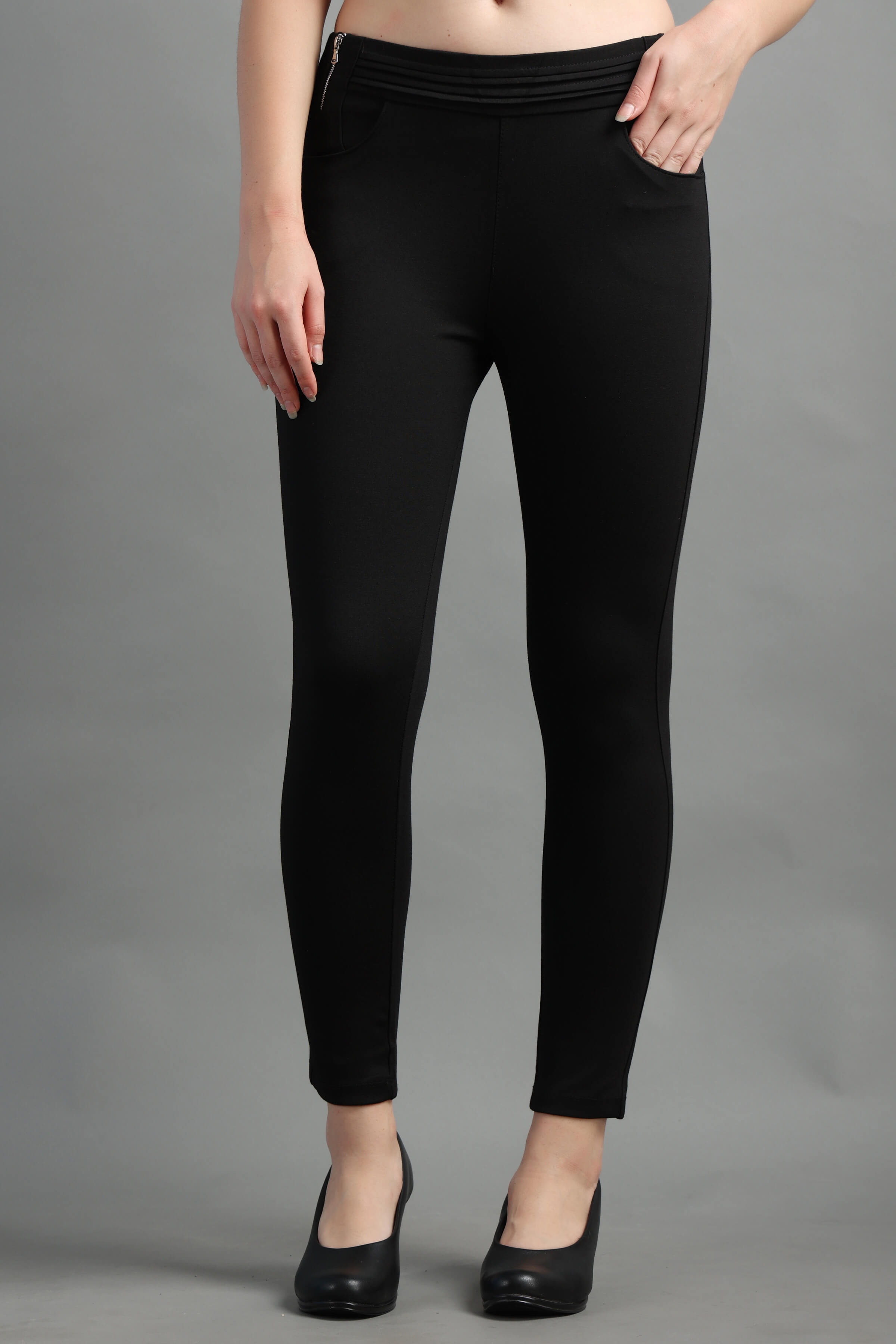 Black Stylish and well fitted Jegging with Zip Detail, Breathable and Premium smooth fabric for all-day comfort, has an elasticated waistband for extra comfort and two front pockets, All styling accessories (elastic, zipper and buttons) used on the garment are of the Best Quality.