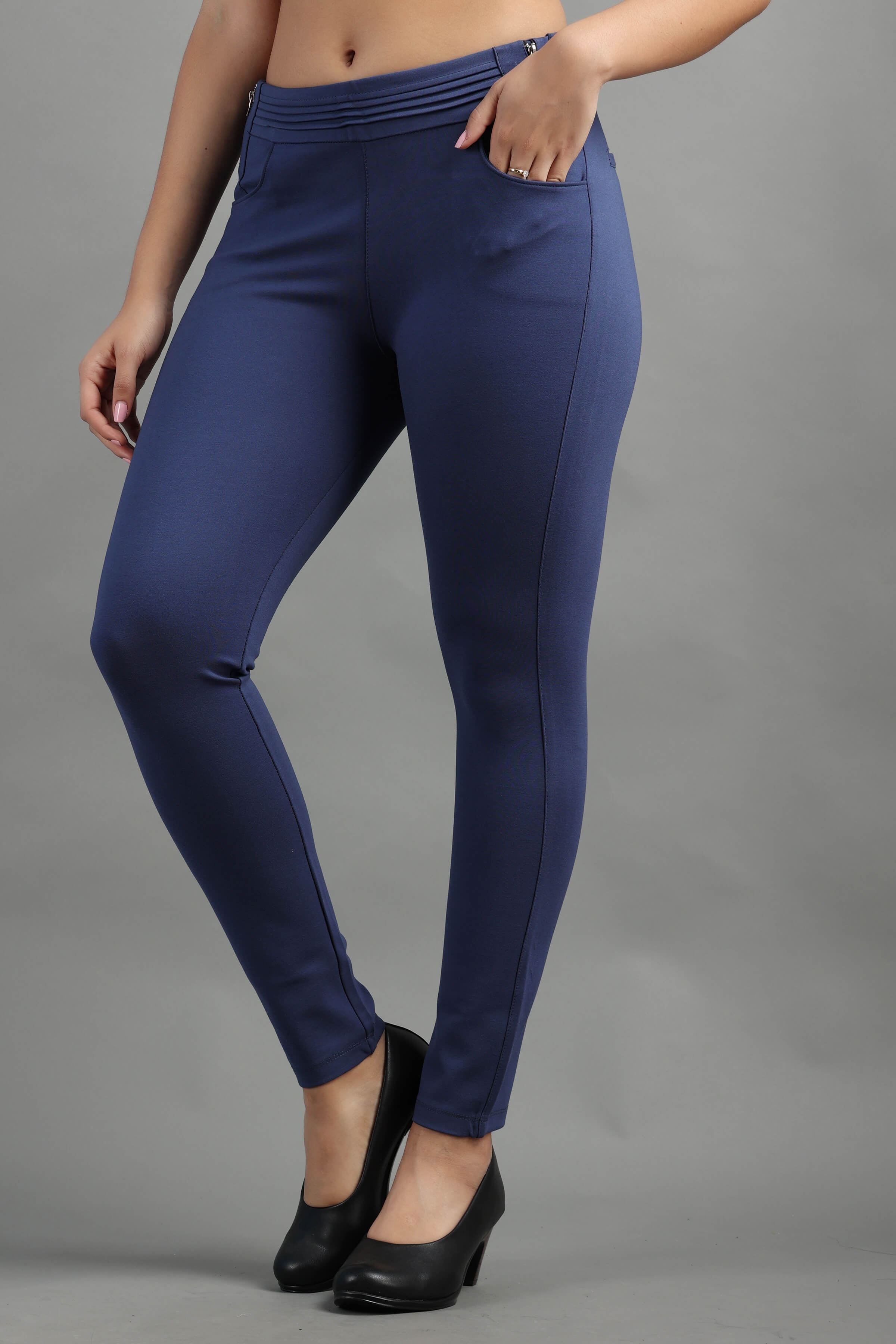 Denim Stylish and well fitted Jegging with Zip Detail, Breathable and Premium smooth fabric for all-day comfort, has an elasticated waistband for extra comfort and two front pockets, All styling accessories (elastic, zipper and buttons) used on the garment are of the Best Quality.