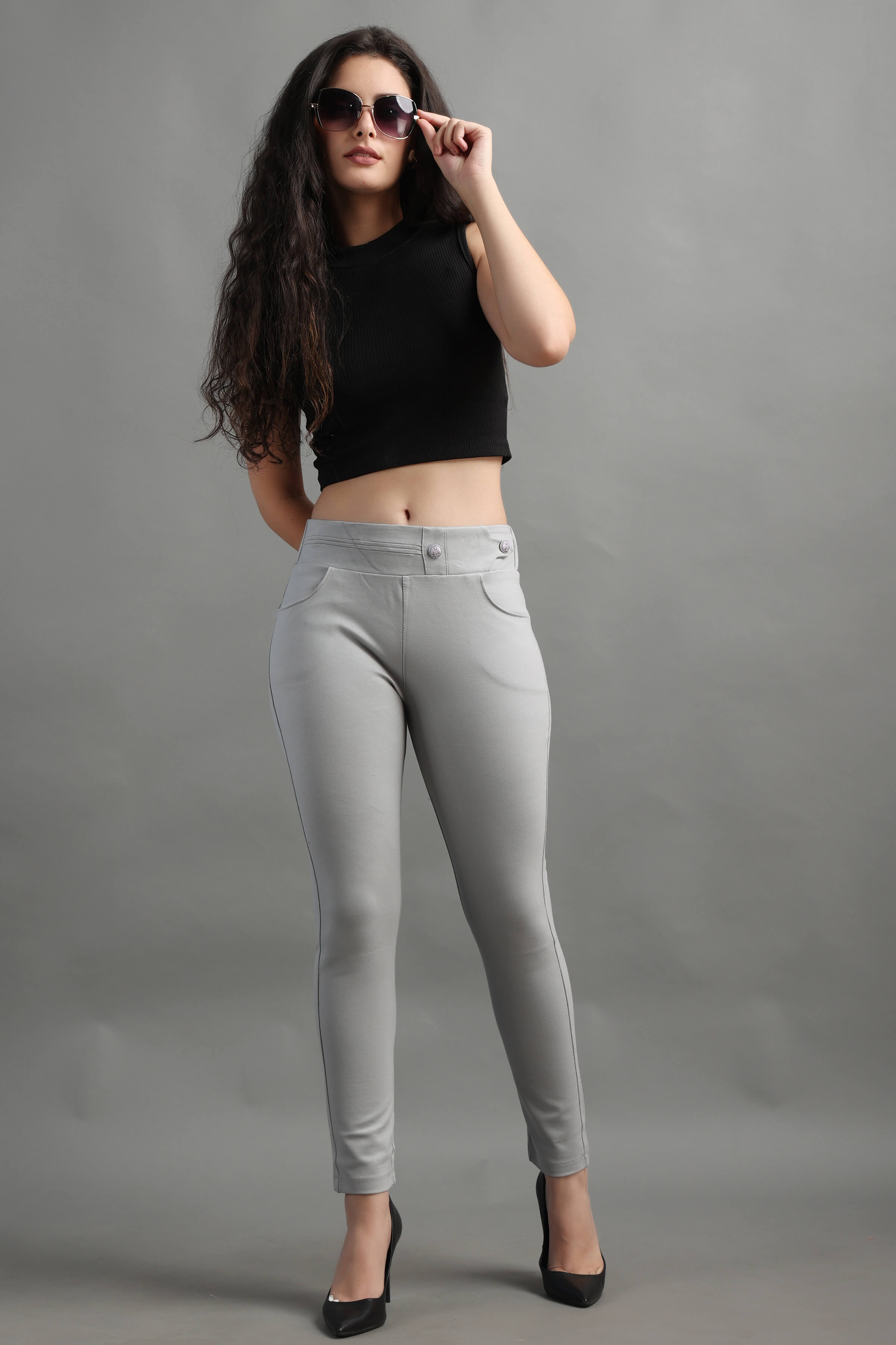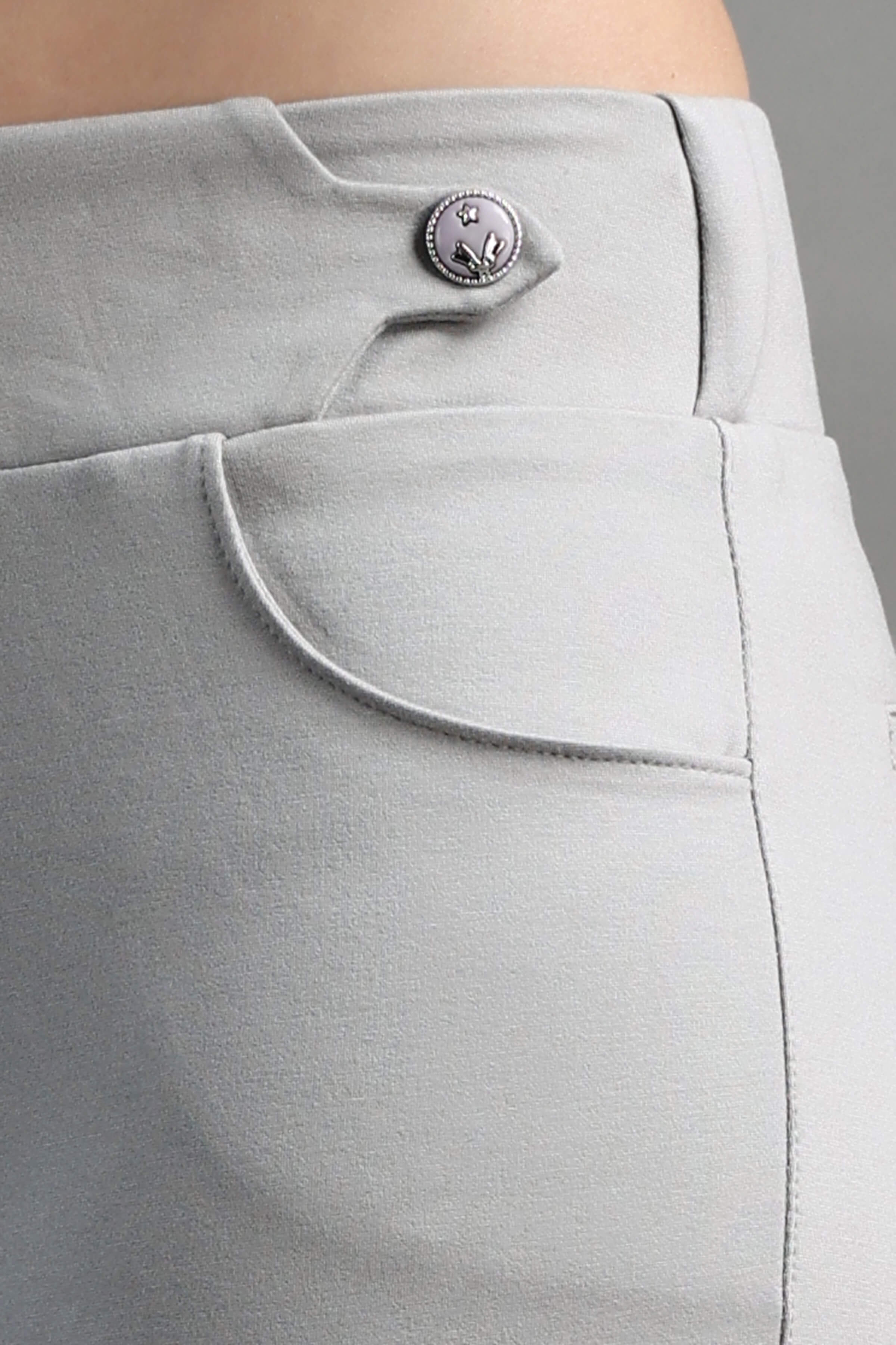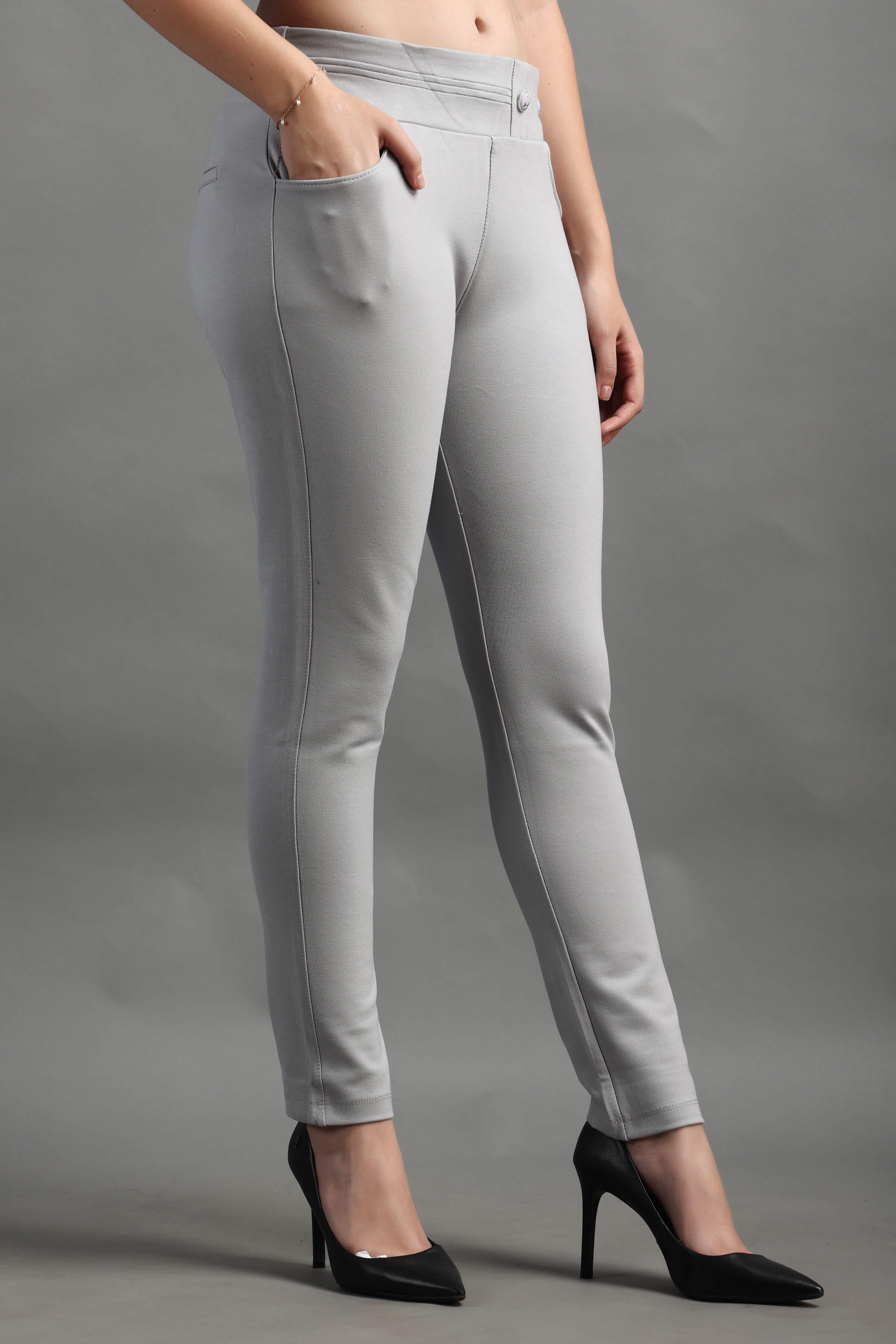L.Grey color Stylish and well fitted Jegging, Breathable and Premium smooth fabric for all-day comfort, has an elasticated waistband for extra comfort and two front pockets, All styling accessories (elastic, zipper and buttons) used on the garment are of the best quality.