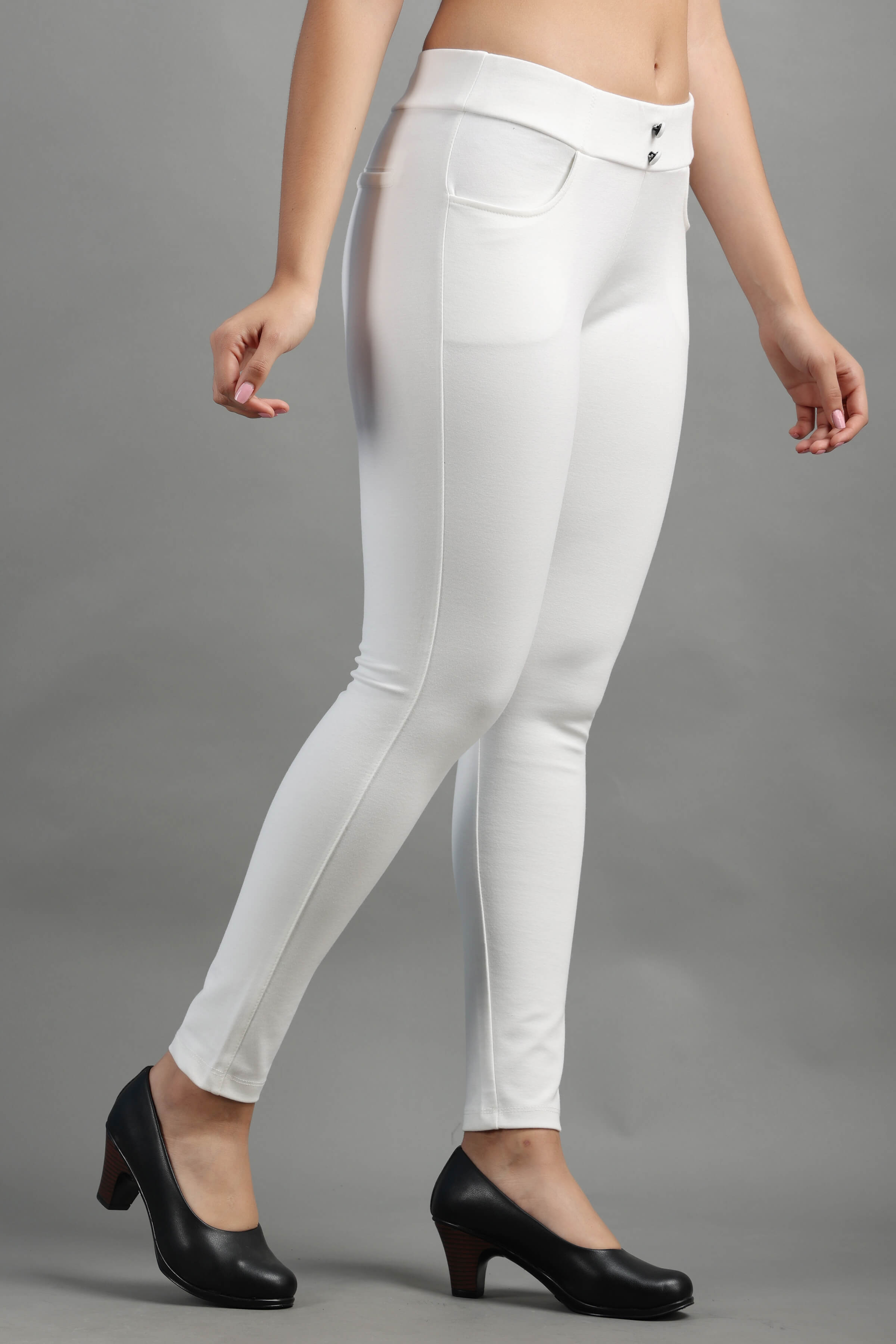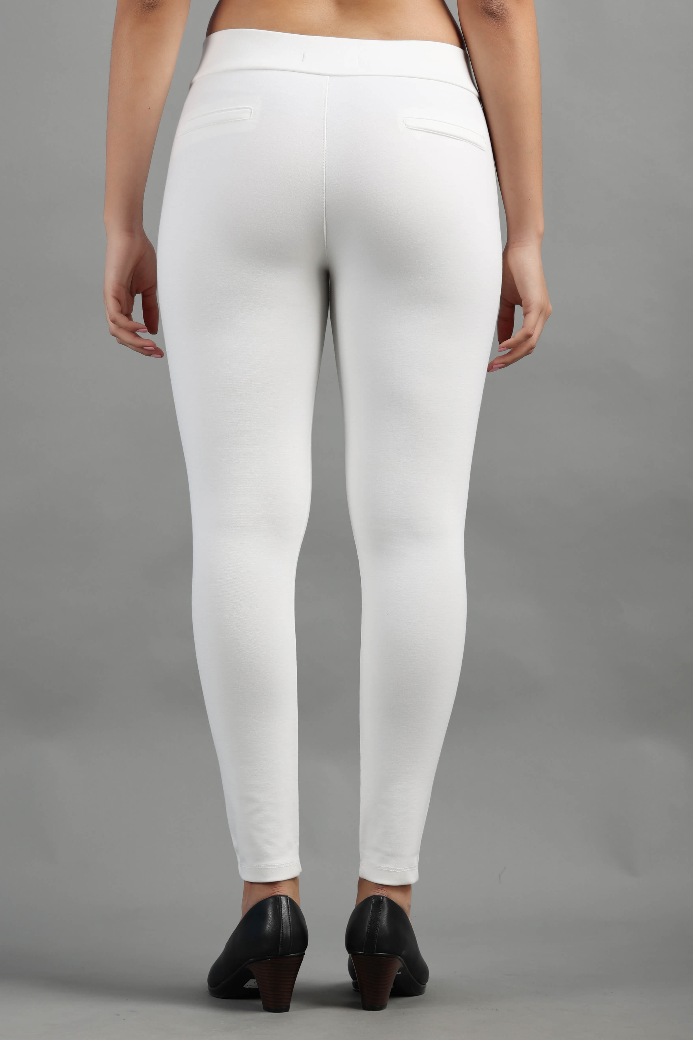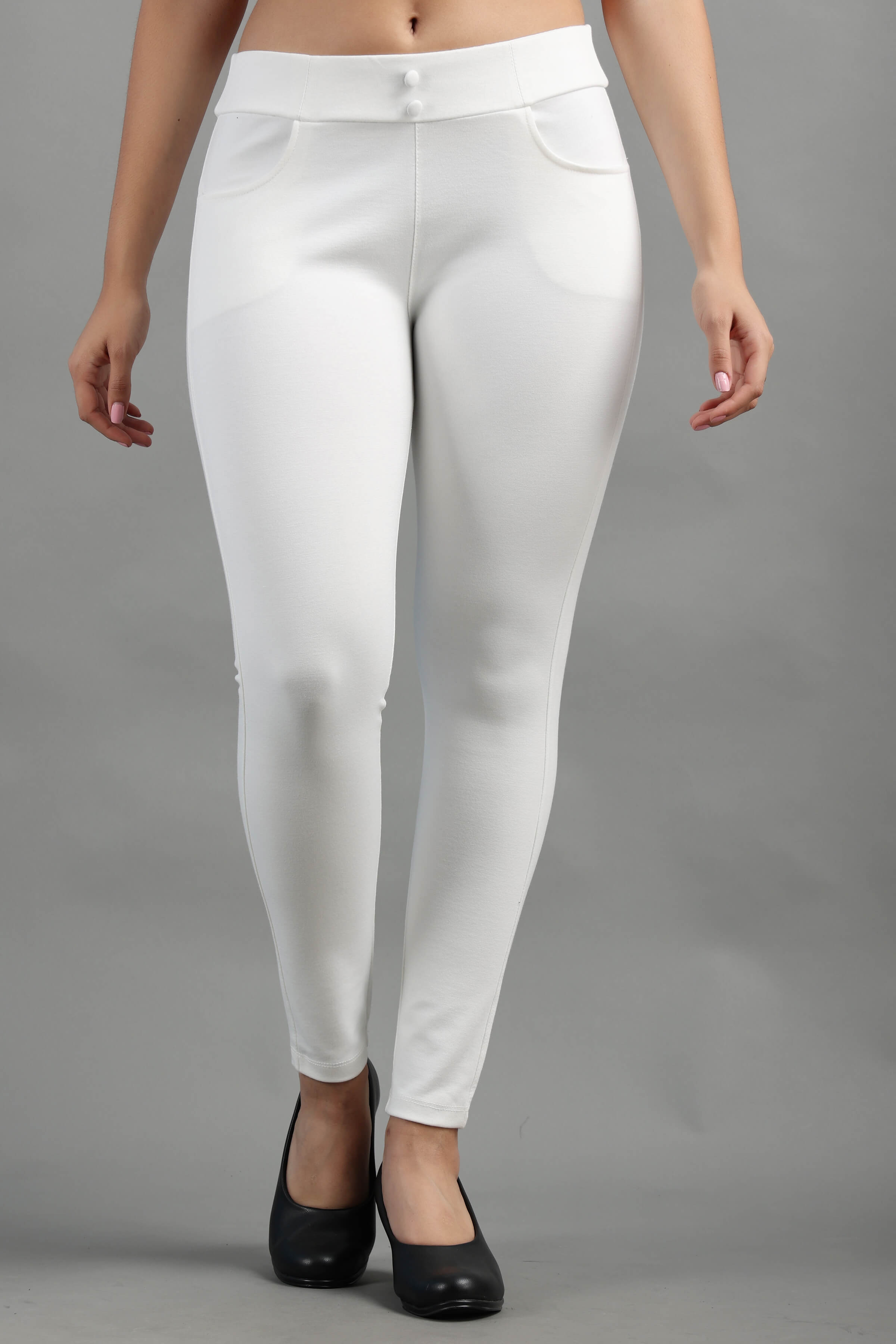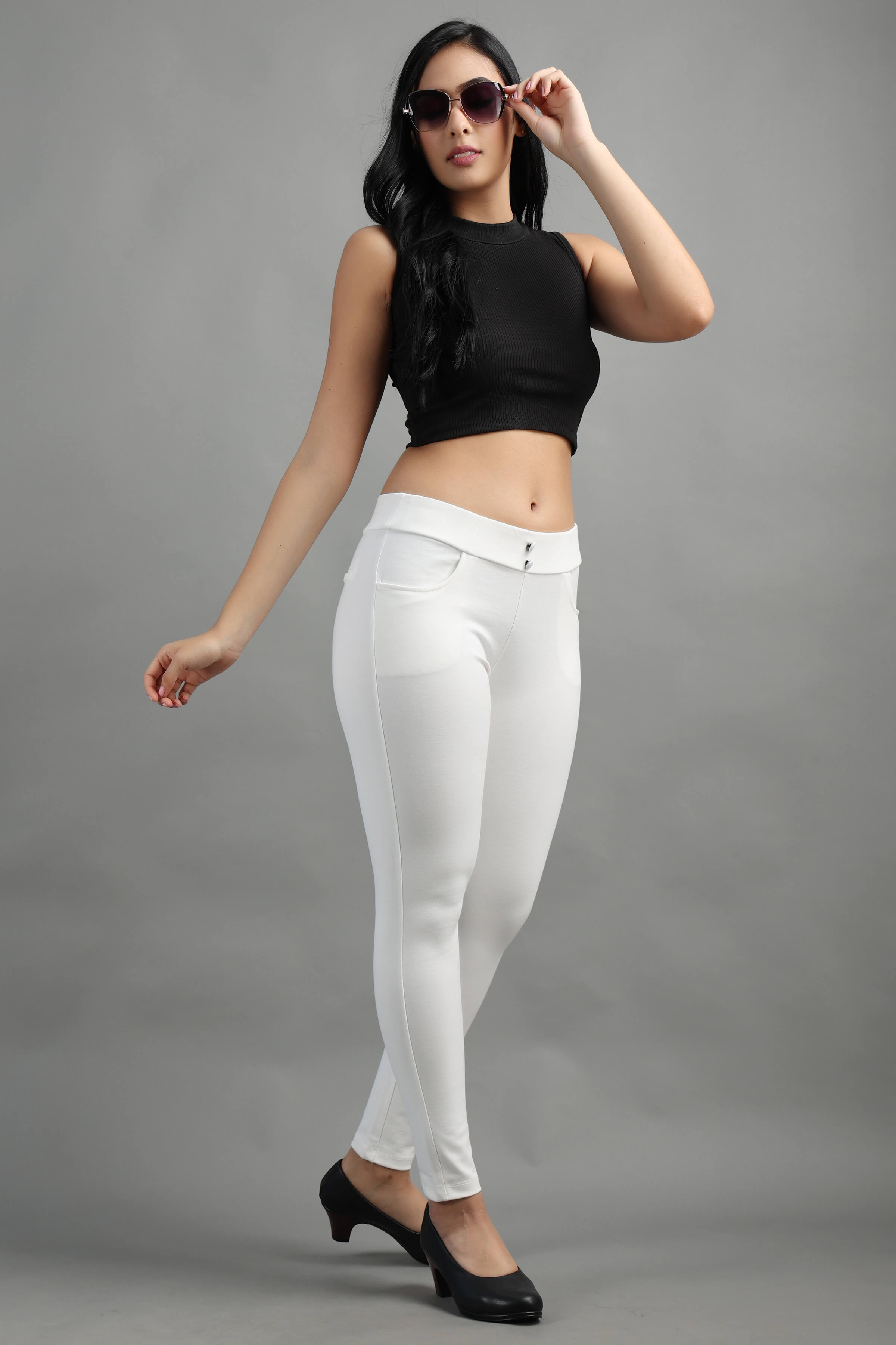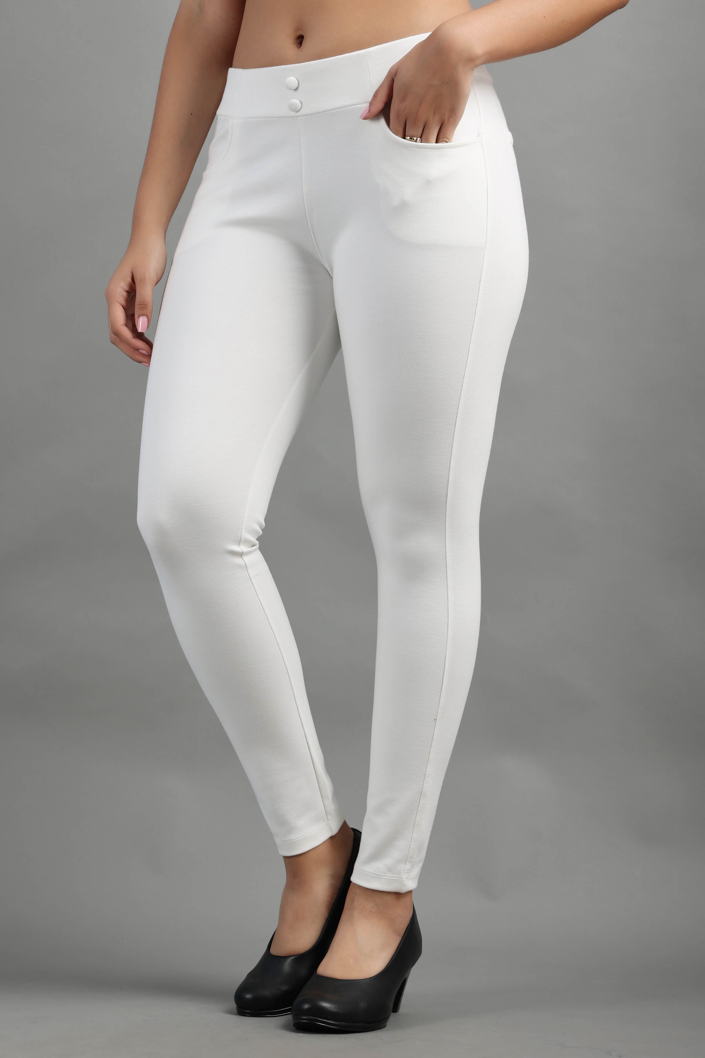 White Stylish and well fitted Jegging, Breathable and Premium smooth fabric for all-day comfort, has an elasticated waistband for extra comfort and two front pockets, All styling accessories ( elastic, zipper, and buttons) used on the garment are of the best quality.