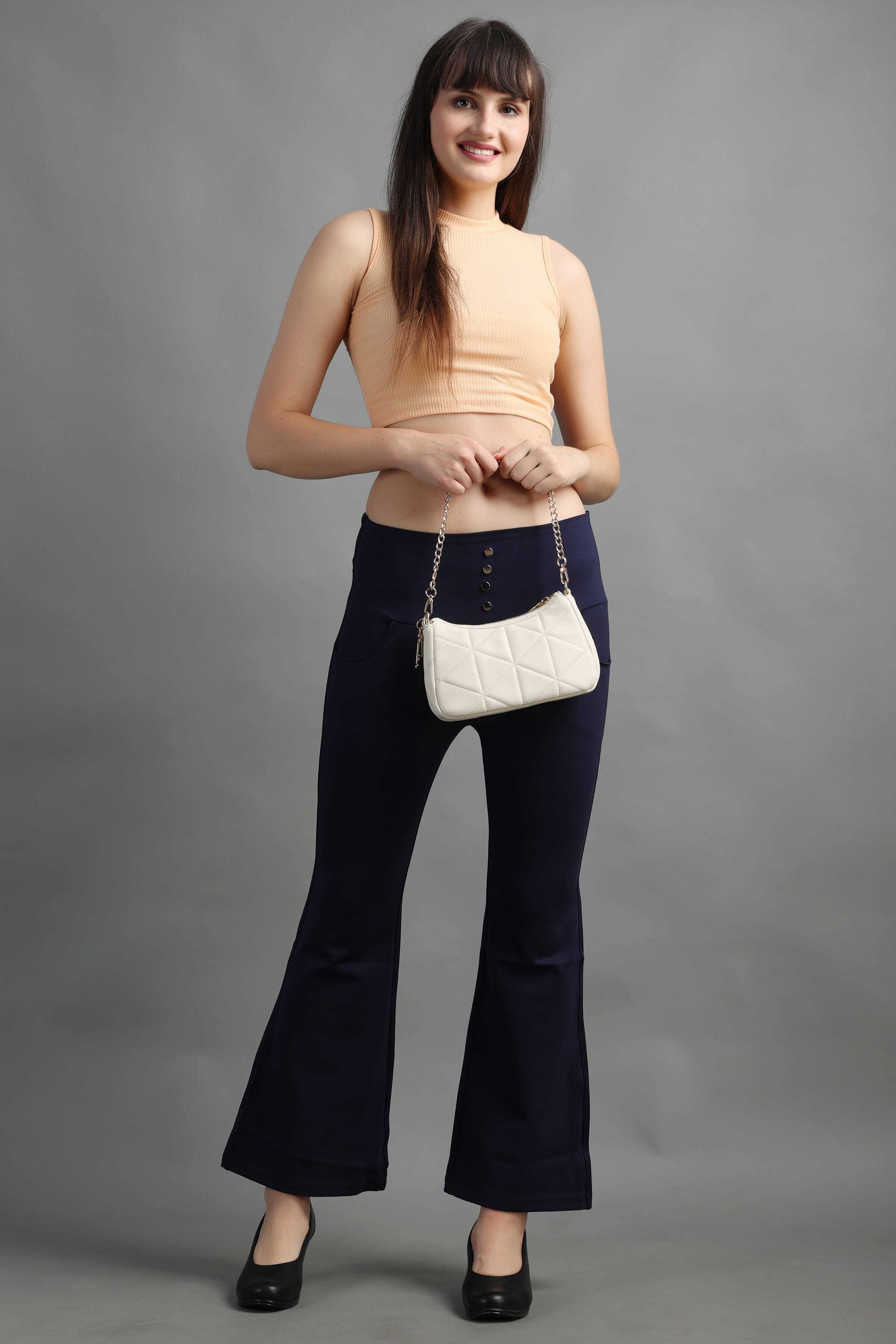 N.Blue Stylish and well fitted bootcut Jegging, Breathable and Premium smooth fabric for all-day comfort, has a broad elasticated waistband for extra comfort and two front pockets, All styling accessories (elastic, zipper, and buttons) used on the garment are of the best quality.
