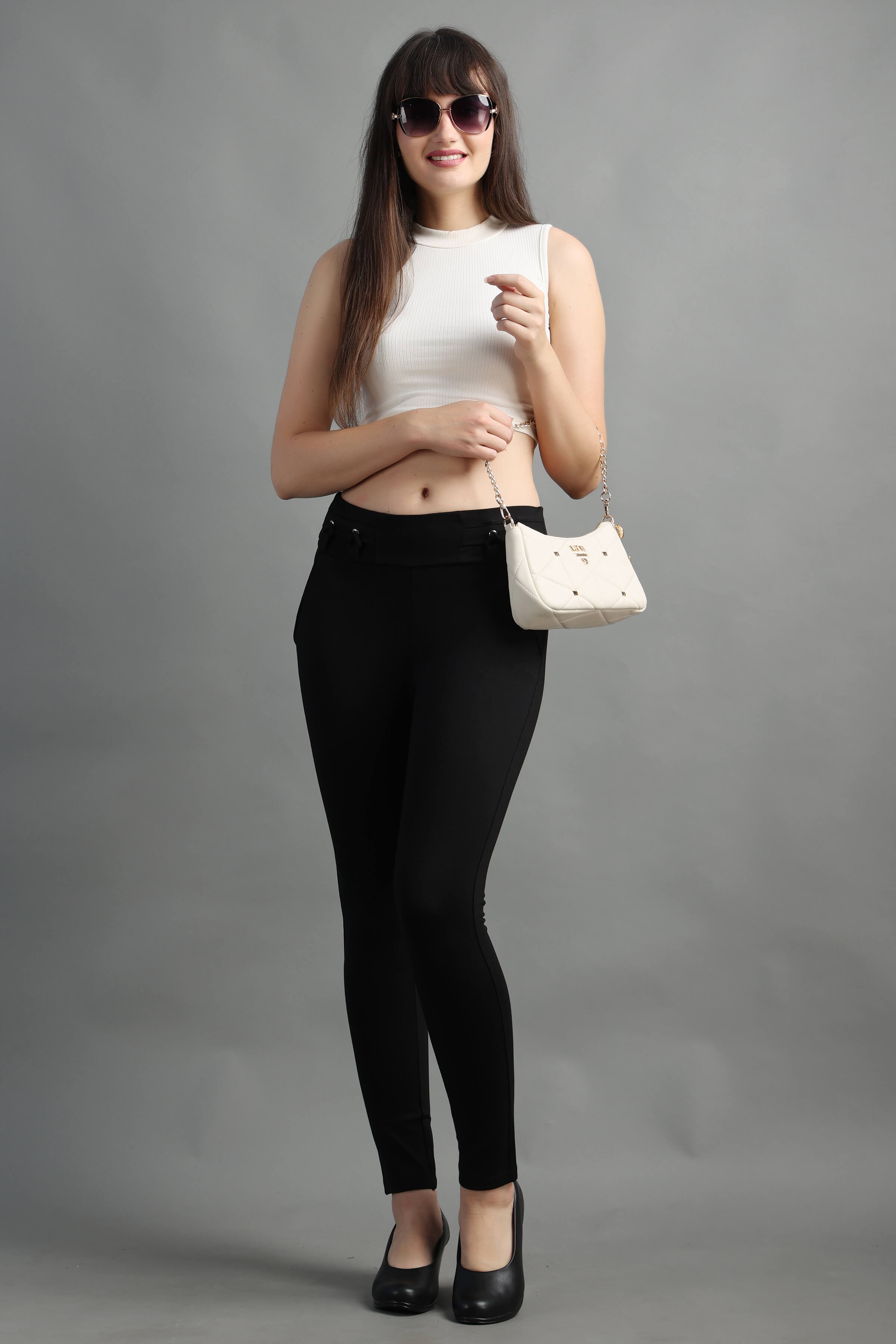 Black Stylish and well-fitted Jegging with, Breathable and Premium smooth fabric for all-day comfort, has an elasticated waistband for extra comfort and two front pockets, All styling accessories ( elastic, zipper, and buttons) used on the garment are of the best quality.